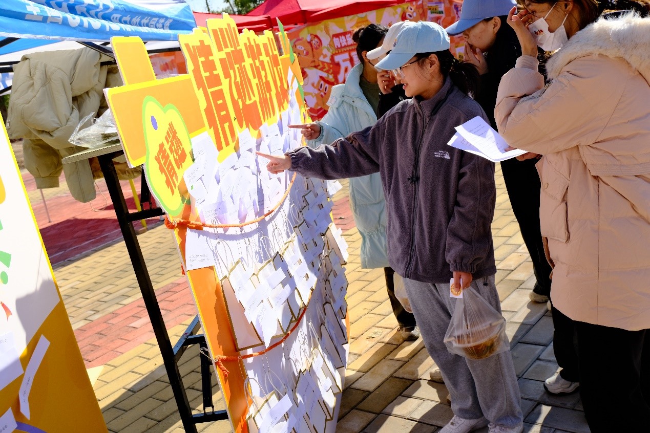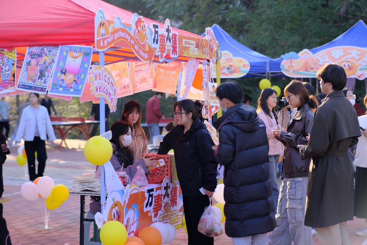 集市活动中聚集了我校各个学院学生的20多个摊位,各种文创产品在此展销,活动现场十分精彩,不仅有各类学生自主制作的手工作品、饰品、文创等;活动现场还设有多个游戏环节,你画(划) 我猜、猜字谜、听歌猜番名、随机舞蹈表演,吸引了众多同学到现场“赶集”。活动现场热闹非凡,人声鼎沸,充满欢声笑语。校园集市活动新颖有趣,学生在将艺术创意转化为实际物品的过程中也体会到了创新创业的乐趣。