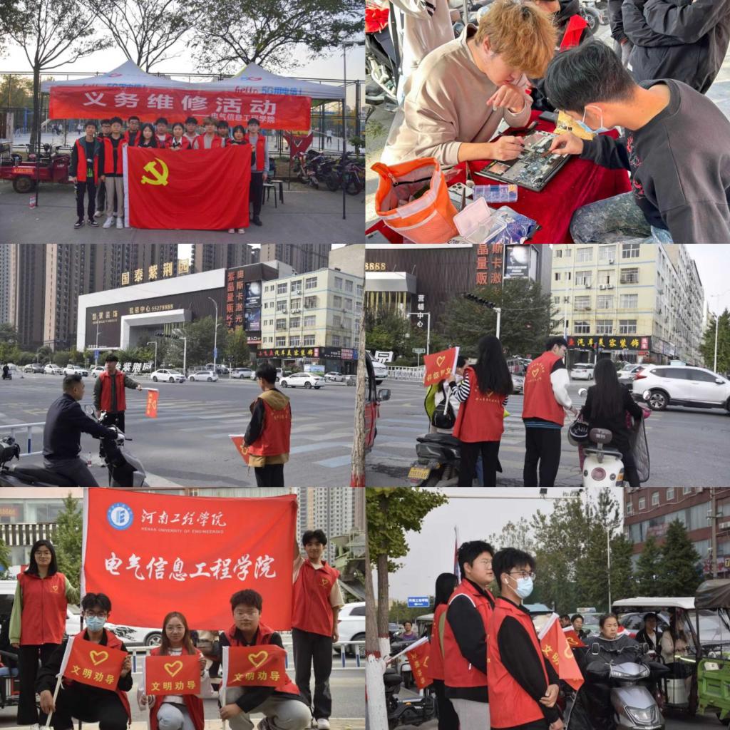 志愿者前往龙湖镇敬老院,他们与老人们亲切交流,为老人提供丰富多彩的文艺表演,用爱心和温暖点亮每个角落,坚定了传承中华优秀传统文化的信念;随后,志愿者走进新郑市龙湖镇沙窝李小学开展义务支教,通过富有趣味的授课方式深入开展社会主义核心价值观教育,点燃了孩子们学习的热情,与他们共度了一段愉快的时光。这次支教活动不仅让孩子们感受到了关爱,又进一步激发了志愿者参与社会公益事业的热情;同期,志愿者团队在校内举办了校园义务维修活动,志愿者携带维修工具,在维修点为同学们提供电脑清理、系统重装、电器日常维护、修理电动车和自行车等志愿服务,活动现场,同学们纷纷登记维修需求,志愿者们耐心维修,以实际行动践行了“奉献、友爱、互助、进步”的志愿者精神;志愿者走上街道,开展交通劝导精神文明创建活动,以实际行动践行社会主义核心价值观,引导市民遵守交通规则,维护道路交通秩序,得到了广大市民的积极响应和广泛支持。