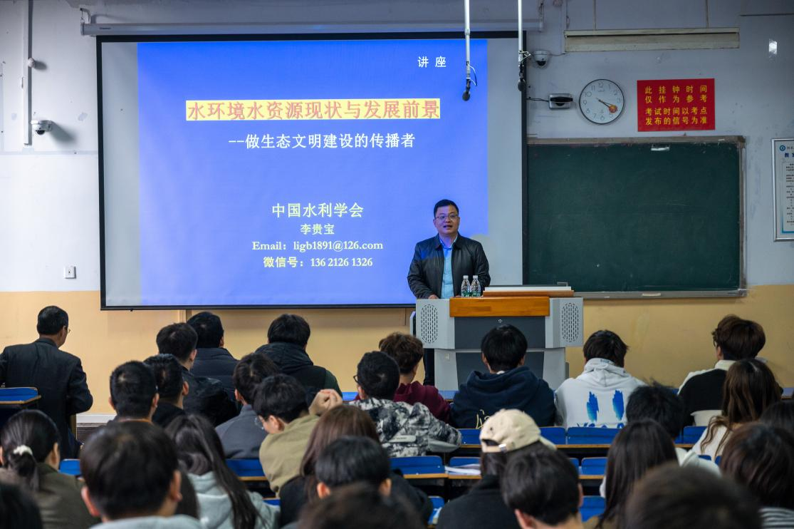 为提升广大师生对水利事业发展现状与前景的了解,3月15日下午,环境与生物工程学院特邀中国科普作家协会会员、首届水利类工程教育认证委员会秘书处副秘书长李贵宝博士于教学楼6102开展“水环境水资源现状与发展前景”专题讲座。学院院长李冰、党委副书记张浩、部分教师和环境工程专业学生参加本次讲座,讲座由李冰主持。