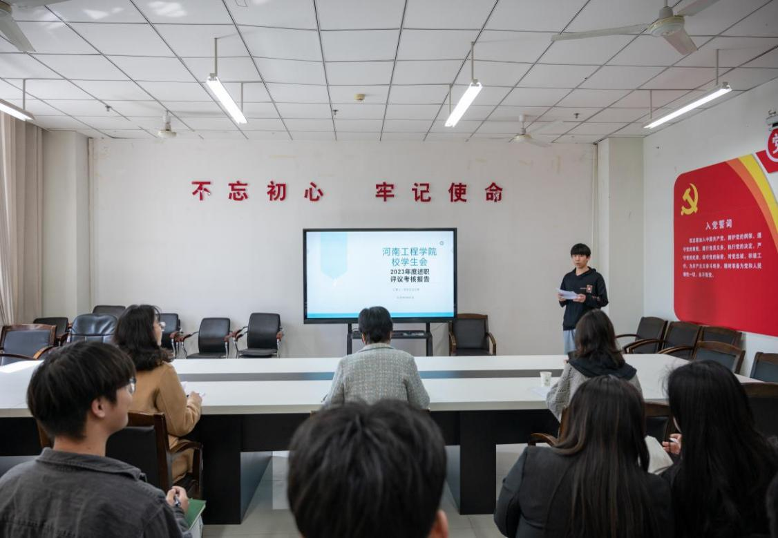 会上,校学生会、学生社团服务中心、河工青年媒体中心、第二课堂学分认定中心、组织建设中心、校团委综合服务中心、“靖宇”宣讲团负责人逐一进行述职,围绕组织建设、工作成果、工作经验、未来展望等方面,列数据、举实例、谈作为、点问题,既认真总结了2023年度工作经验、工作亮点,又审视不足之处,并提出了2024年的工作思路和计划。