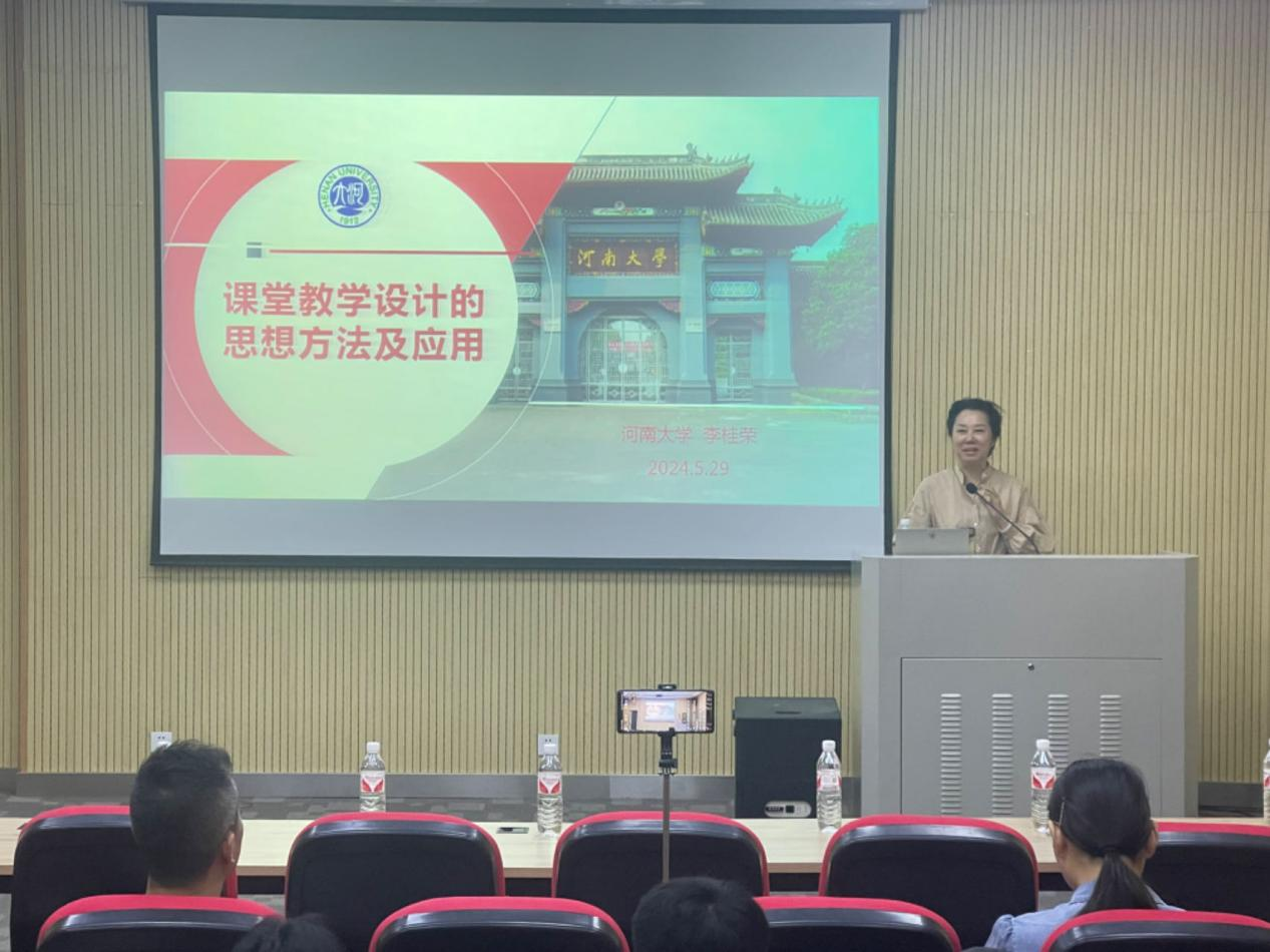 本次活动校工会邀请了河南大学教育学部教师、河南省特聘教授、二级教授、博士生导师、河南省教育政策研究院院长李桂荣为大家进行了“课堂教学的设计的思想方法及应用”主题讲座。李桂荣教授通过“课堂教学设计的价值追求”“课堂教学设计的基本依据”“课堂教学设计的思想方法”“教学竞赛的注意事项”等方面分享了自己课堂教学设计思想的教学经验。