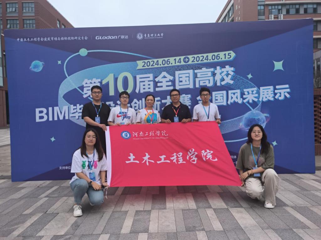 6月14—15日,第十届全国高校BIM毕业设计创新大赛风采展示活动暨颁奖典礼在青岛理工大学黄岛校区举行,我校土木工程学院代表队申选召、尚琛煦两位老师带领翟恺悦、肖杉、孙卓、马旭磊、曾子涵5位参赛同学参加。