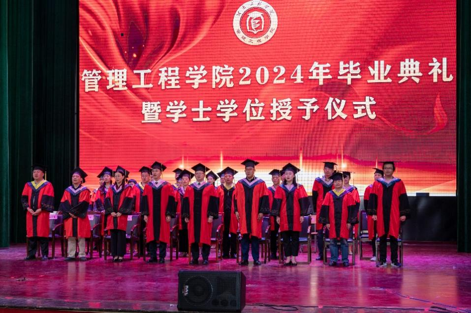 高博宣读2024届毕业生《获得毕业生资格的决定》和《授予学士学位的决定》;副院长高顺成宣读《河南省优秀毕业生表彰决定》和《管理工程学院关于表彰2024年考取研究生学生的决定》;院党委副书记曹冰宣读《管理工程学院星火先锋表彰决定》和《管理工程学院就业先进个人表彰决定》。