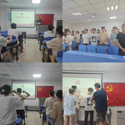 为庆祝中国共产党成立103周年,增强党员的使命感,6月28日,经济贸易学院于9A306-307举行入党宣誓暨佩戴党员徽章仪式。学院党委副书记李二亮,专职组织员丁雪龙,以及学生党支部新吸收的18名党员参加本次会议,大会由学生党员薛喜祥主持进行。