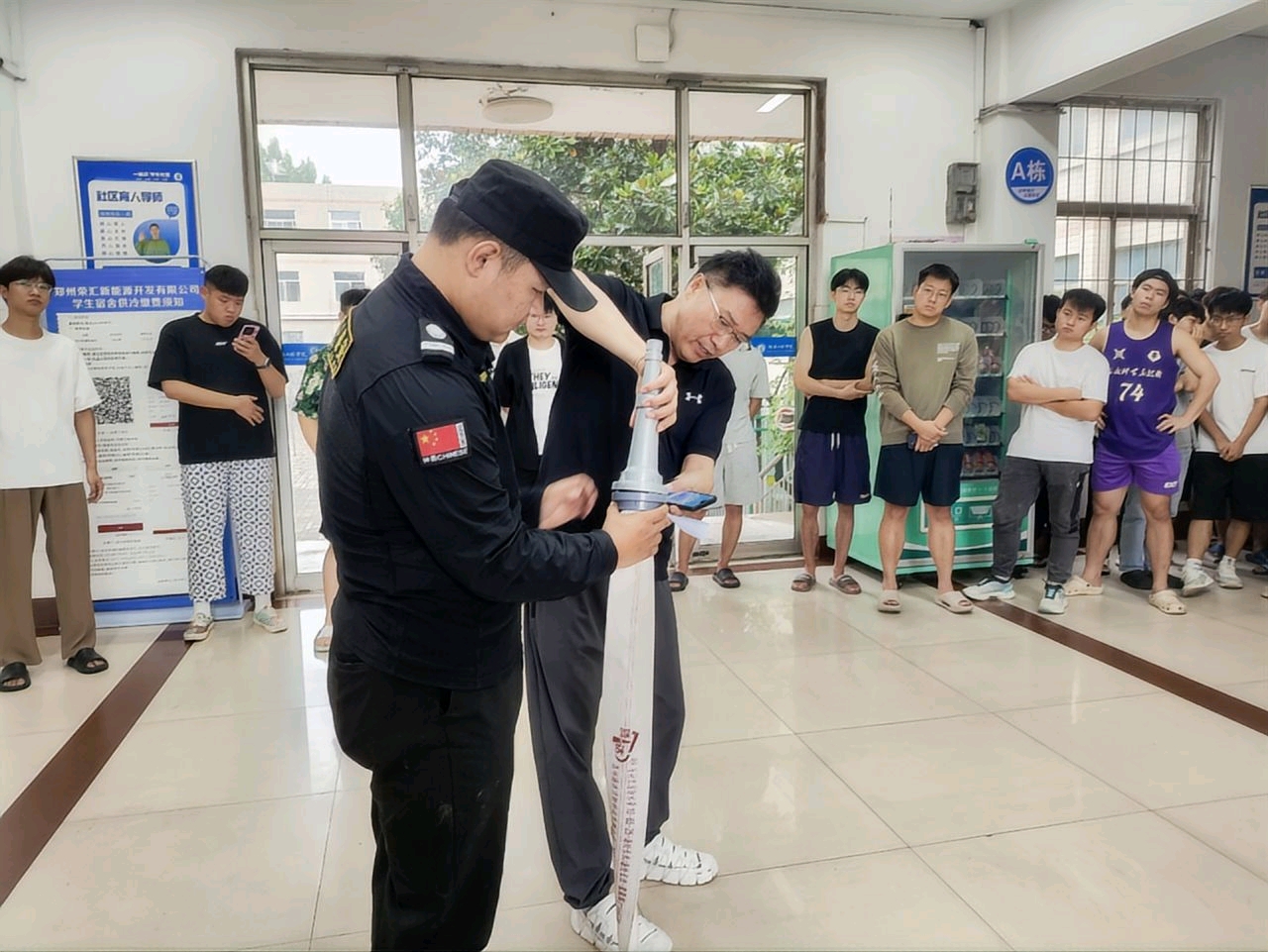 培训采取“分批次、全覆盖”的形式,分别在泽苑2号楼、3号楼、6号楼一楼大厅及庭院区域有序进行。培训现场,李国伍以真实案例为鉴,深入浅出地剖析了高校火灾事故的预防策略与应急处理要点,通过互动问答环节,向学生传授消防常识、紧急疏散技巧及防汛自救技能,并亲自示范灭火器与消防水带的正确使用方法。参训学生认真聆听讲解,积极动手实操,展现了高度的学习热情与自我防护意识。