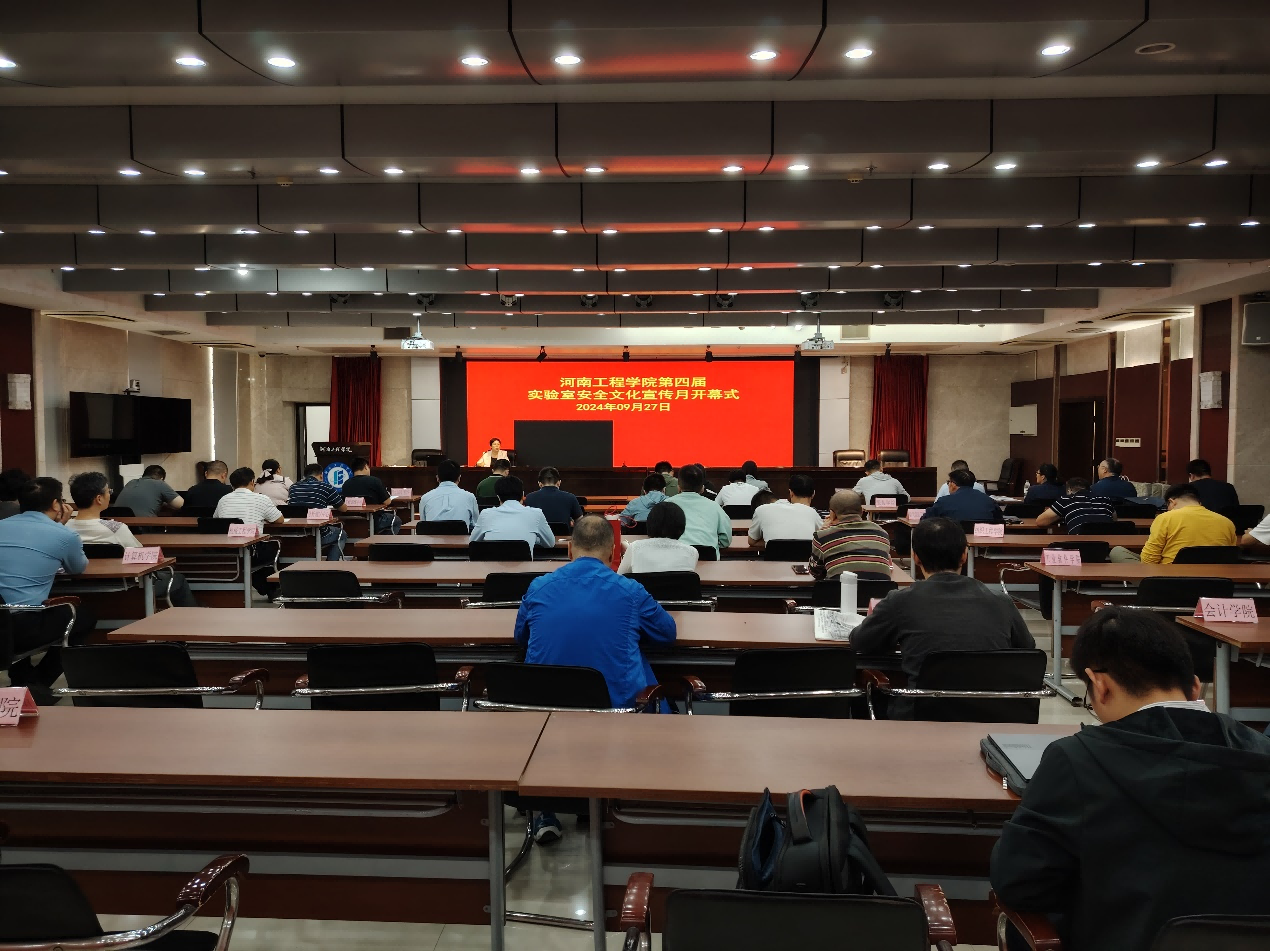 为全方位加强实验室安全常态化监管和督导,推动学校实验室安全文化建设,9月27日上午,我校正式启动“河南工程学院第四届实验室安全文化宣传月”活动,启动会主会场设在综合楼一楼会议室,各院部主管领导、实验中心主任、实验室全体老师、科研实验室安全责任人参加了此次会议,会议由实验室管理处副处长谢瑞主持。同时,各院部设置分会场,组织师生观看河南省高校第四届实验室安全文化宣传月开幕式直播。