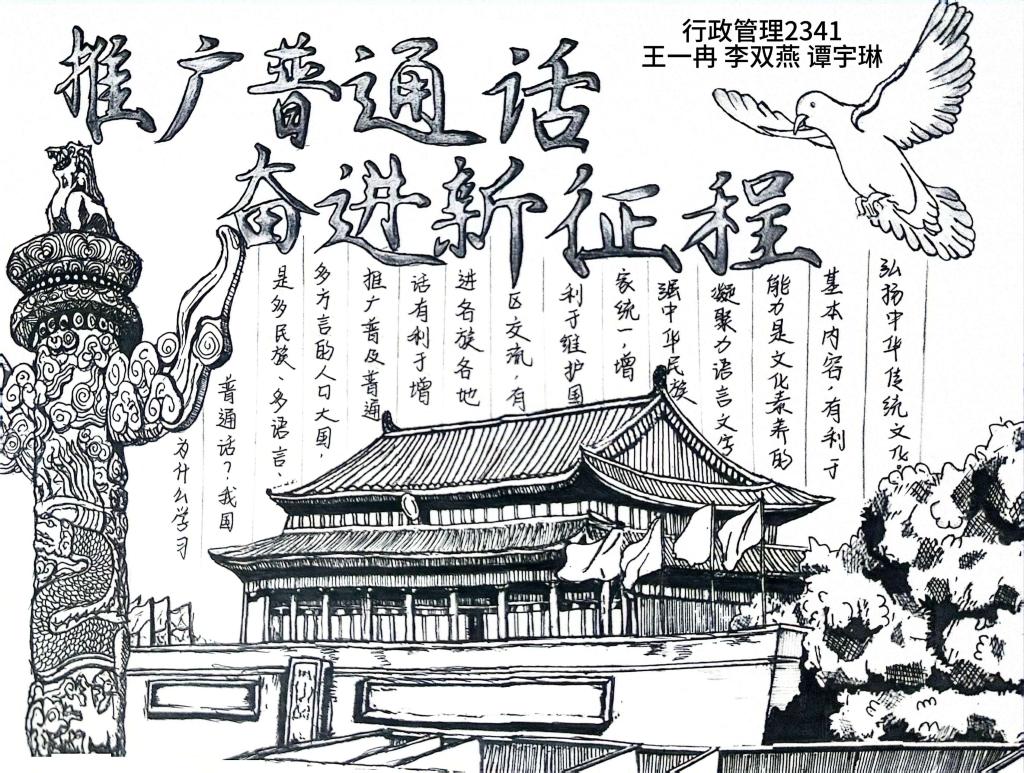 本届“推普周”以“加大推普力度 筑牢强国语言基石”为主题。活动期间,人文政法学院举办一系列活动:开展“推广普及国家通用语言文字 铸牢中华民族共同体意识”主题宣传,在校园内悬挂推广普通话横幅、张贴各种推普宣传标语、宣传画等。