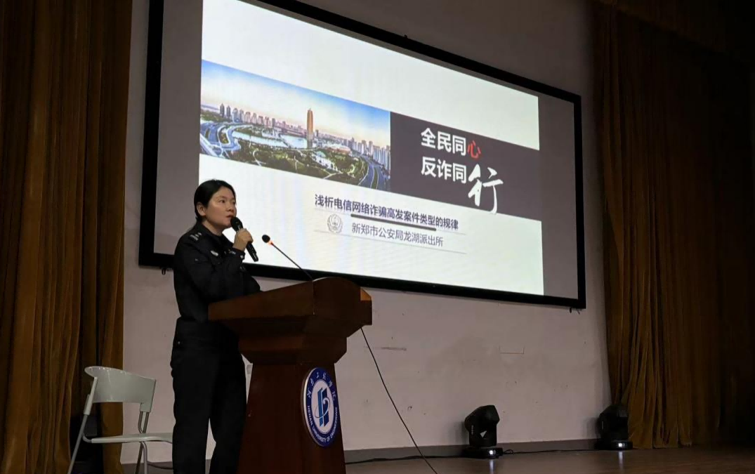 为了增强学生的安全防范意识和防诈意识,预防电信诈骗案件的发生,艺术设计学院于10月14晚在南区创新创业大礼堂开展了一场防诈骗主题讲座,邀请了新郑市公安局龙湖派出所姚静警官担任宣讲人,我院五百余名学生踊跃参加,现场氛围热烈。