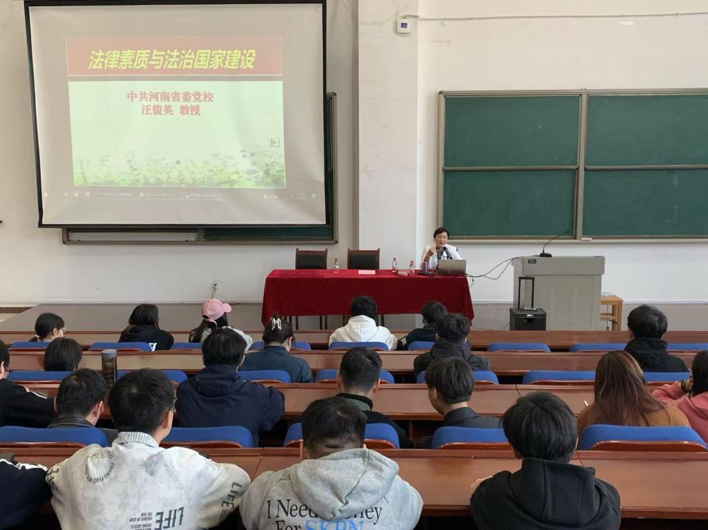 为提升学生的法律素养和法律意识,增强学生的法治思维和法治观念,10月23日下午,人文政法学院邀请中共河南省委党校法学教研部原主任汪俊英教授为师生作第十一期人文素质教育专题讲座。讲座由副院长冯源主持。