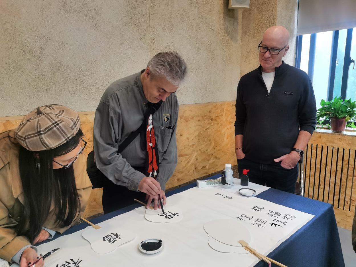 活动现场气氛热烈,中外师生齐聚一堂,在轻松愉快的氛围中,教师与学生相互交流中外教育文化差异,互动环节一一解答学生对国外学习和生活的疑问。随后,师生共同体验书法及非遗文化漆扇的制作过程,沉浸式感受中华优秀传统文化的魅力。此次活动促进了外籍教师与学生间的交流,使其对中国及中华优秀传统文化有了更深入的了解,同时也拓宽了学生的国际视野,为其今后的学习和成长找到更多新颖的视角。