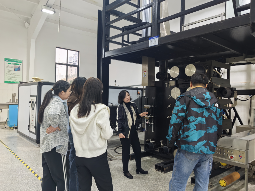报告结束,李新教授带领青年教师前往河南省纤维制备与改性工程技术研究中心进行实地参观学习。实验室里,先进的制备设备、精密的检测仪器以及有序的科研环境给青年教师们留下了深刻印象。在李新教授的悉心指导下,他们不仅了解了尼龙材料的制备流程与性能测试方法,还亲自体验了部分实验操作,增强了实践动手能力。
