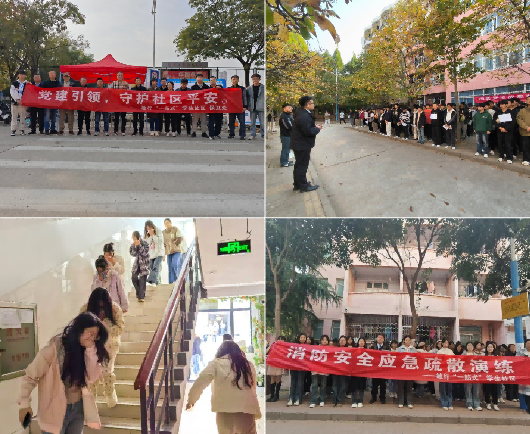 为进一步加强学生安全教育工作,强化学生安全意识,保障学生人身和财物安全,营造平安和谐的校园环境,11月6日下午,西区学生中心党支部和保卫处党支部联合开展“党建引领,守护社区平安”支部1+1主题党日活动,西区学生中心党支部、保卫处党支部及西区各庭院功能型党支部党员干部及千余名学生参加活动,活动邀请河南省消防协会义务消防科、新郑市龙湖派出所工作人员现场指导。