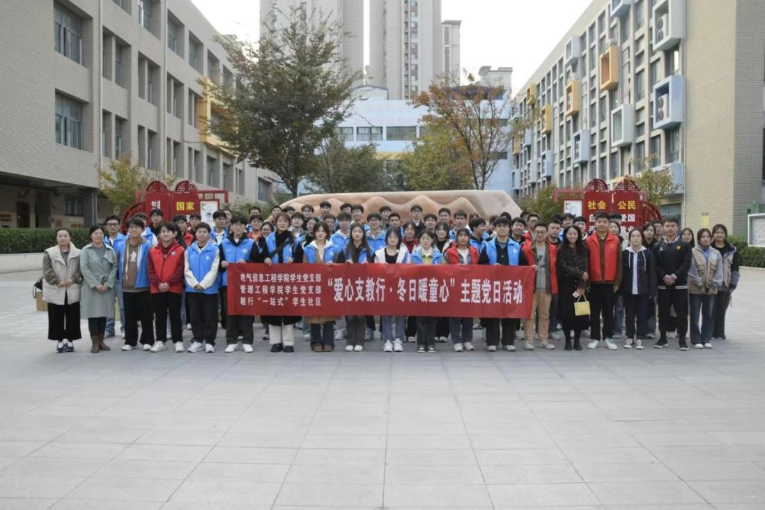 为进一步推进学院党建品牌“红旗先锋社”下属“红旗服务团”影响力,积极践行“走出去、引进来”理念,不断强化广大党员凝心铸魂强根基的使命担当,促进教育资源共享,发挥党员示范引领、辐射带动作用。11月8日电气信息工程学院党支部联合管理工程学院学生党支部、敏行一站式学生社区党支部,前往沙窝李小学共同开展“爱心支教行,冬日暖童心”主题党日活动。