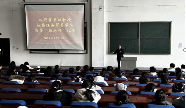 为更好备战2025年“挑战杯”全国大学生课外学术科技作品竞赛,12月18日下午,经济贸易学院特邀请“挑战杯”知名指导专家——河南工业大学翟书斌教授进行专题指导,学院领导、各系教师及相关学生参会。