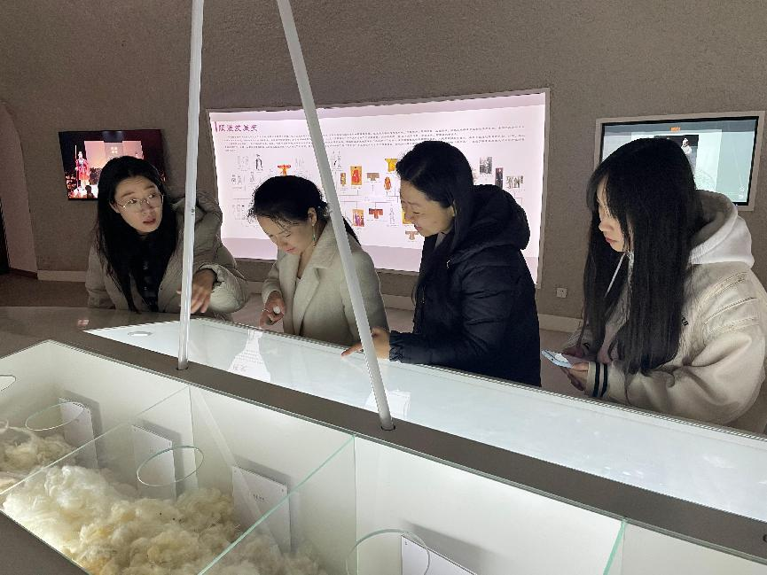 2月19日,郑州美术馆创作研究部主任、河南省文艺评论家协会会员、郑州市“学术技术带头人”周玲玲应邀到我校纺织服饰博物馆参访交流,在负责人常卓及艺术设计学院副教授刘宁的陪同下,参观了博物馆的各个展区。
