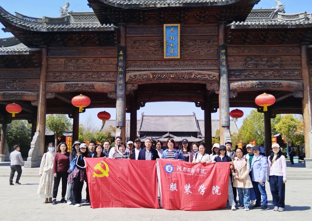 3月22日上午,河南工程学院服装学院党委组织党员师生前往朱仙镇,开展“赓续忠烈精神 激活非遗文脉”主题党日活动。学院党委书记潘景果带领全体教师党员代表通过"非遗体验+红色研学"的沉浸式实践,探索文化传承与创新路径。