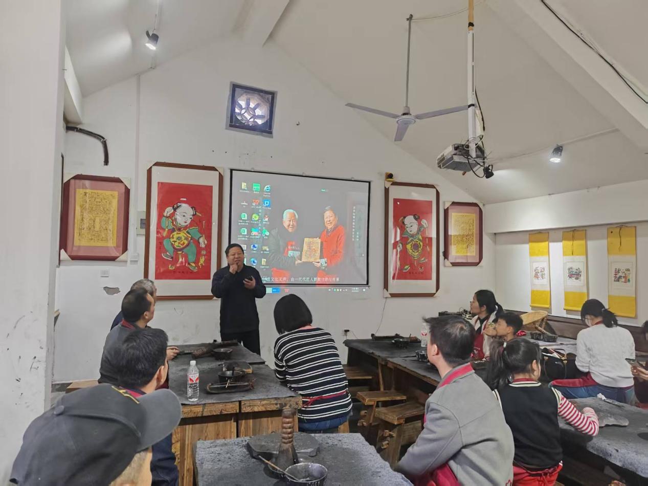 在启封故园朱仙镇木版年画社,跟随河南省工艺美术大师张继中学习木板年画制作。活动中,张继中大师系统地讲解了木版年画的历史脉络与丰富的民俗内涵,重点传授了拓印技艺。参与的老师们在他的指导下,成功完成了《刘海戏金蟾》等经典作品的拓印实践,亲身体验了“断刀留白”等传统技法的独特魅力。此外,张继中大师还提出将门神、灶君等年画元素转化为服装纹样,探索非遗技艺在当代服装设计中的应用。