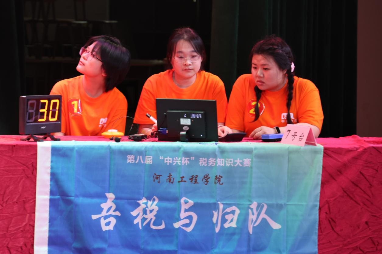 4月26日下午,第八届“中兴杯”税务知识大赛决赛在河南工程学院西校区创新创业大讲堂顺利举行。本次大赛由中税中兴咨询集团和河南工程学院会计学院共同举办。中税中兴咨询集团副总经理李向辉、河南工程学院会计学院党委书记、院长程光出席了决赛。此次大赛共有11所高校的32支队伍参与,经过前期初赛和复赛,华北水利水电大学、郑州航空工业管理学院、中原工学院、郑州升达经贸管理学院、郑州经贸学院、河南工业贸易职业学院、河南工程学院7所高校共8支队伍进入决赛。