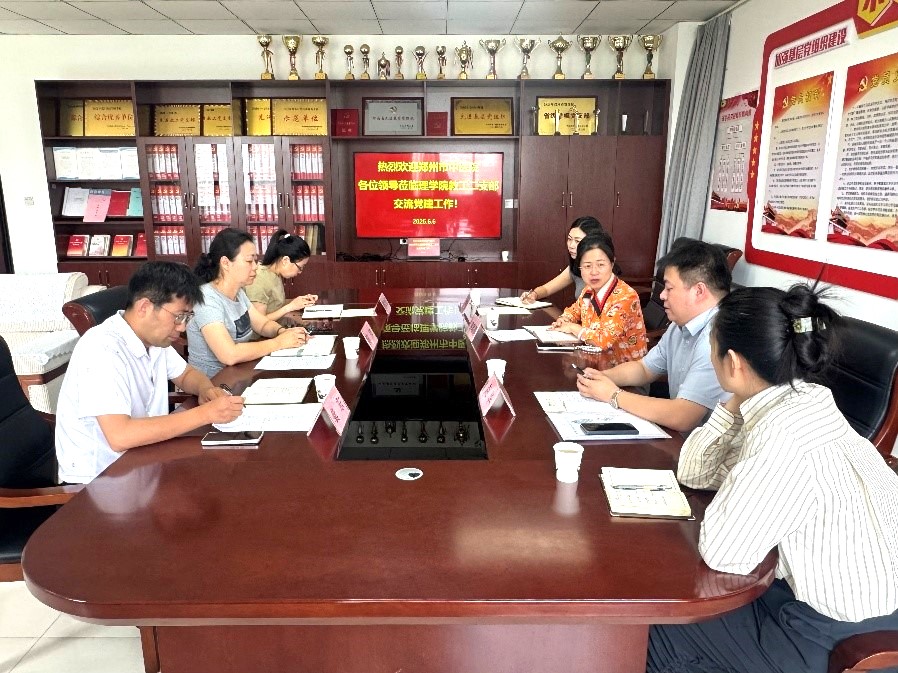 2025年6月6日上午,郑州市中医院党办主任路瑞娜、外联办主任赵华等莅临河南工程学院理学院开展党建工作交流活动。理学院党委副书记陈萍、教工第二党支部书记龚东、组织员钟会娟出席交流活动。