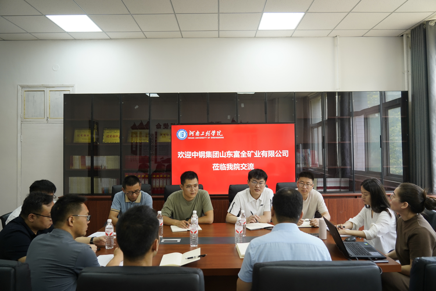 6月13日,中钢集团山东富全矿业有限公司技术计划部副经理付信凯技术团队一行到访环境与生物工程学院,围绕矿山地质勘查领域的关键技术问题开深入交流。学院院长李冰、副院长刘见宝及骨干教师参加了此次交流座谈。