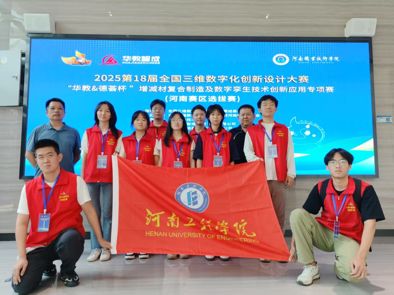 6月21至22日,由全国三维数字化创新设计大赛河南赛区组委会主办、河南职业技术学院承办的2025第18届全国三维数字化创新设计大赛“华教&德荟杯”增减材复合制造及数字孪生技术创新应用专项赛河南省赛区选拔赛,在河南职业技术学院合鼎楼举行。本次大赛全省共有28所高校、70余支队伍、200余名学生参赛。我校参赛队伍3支。经过2天激烈角逐,获得省级特等奖1项,三等奖2项的优异成绩,创下了参赛以来最佳成绩,3名特等奖获得者将代表学校参加2025年度的全国总决赛。