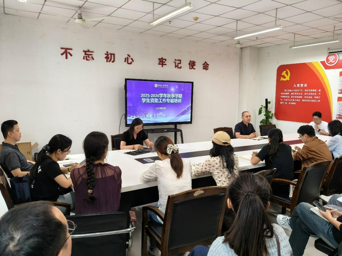 9月10日,我校在综合楼A207会议室开展2025-2026学年秋季学期学生资助工作专题培训,旨在精准落实资助政策,提升学生资助工作队伍业务能力,切实做好资助育人工作。学生处副处长、学生资助管理中心副主任夏增强、各学院、力行书院资助专员及学生代表参加培训,学生资助管理中心办公室主任胡晓担任主讲。