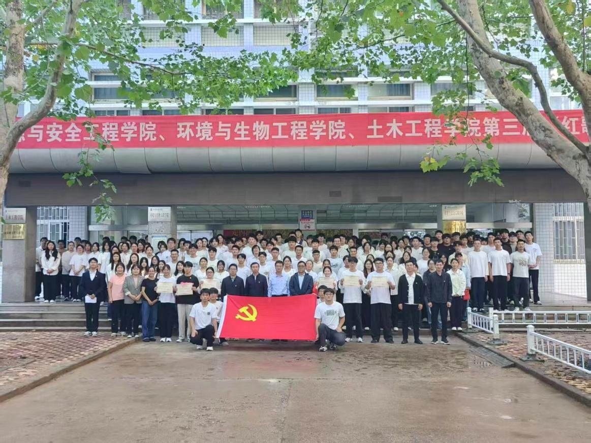 为庆祝中华人民共和国成立76周年,纪念中国人民抗日战争暨世界反法西斯战争胜利80周年,通过歌声传承红色基因,激发广大学生党员的爱国热情与使命担当,9月24日下午在2号实验楼一层大厅,资源与安全工程学院、环境与生物工程学院、土木工程学院组织所属学生党支部联合举办了“迎国庆合唱比赛”,比赛由土木工程学院承办。