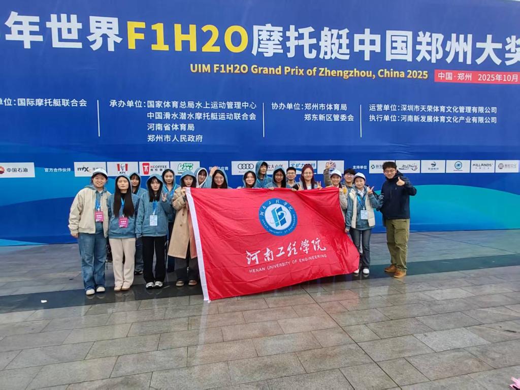 10月10日至12日,2025年世界F1H2O摩托艇中国郑州大奖赛在郑东新区龙湖水域顺利举行,全球摩托艇高手齐聚于此。我校受赛事主办方邀请,选派18名志愿者全程参与赛事采访,翻译,设计等服务保障,3名同学获“突出贡献者”称号,4名同学获“优秀志愿者”称号。
